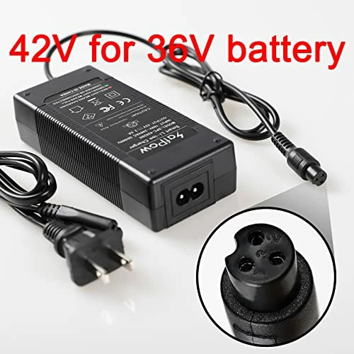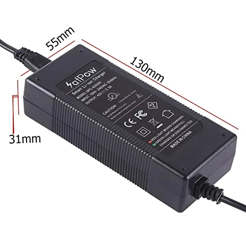 - Faster: Output 42V 2A 84W. Input: AC 100-240V 50/60Hz. Led indicator: Red light means charging. Connect and forget easy-use battery charger 3 prong.