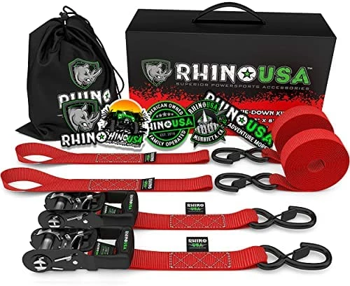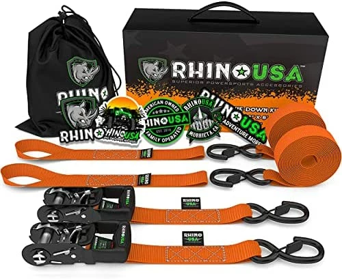 What can I say. I am absolutely amazed at what I got and for the price I paid. Always a little bit nervous about what I’m gonna get when I order something new online. But rest assured you’ll never regret this purchase. Came home f from work to find the box on my end table waiting for me. The box alone brought on excitement like a kid with a new dirt bike. Once I opened it up I was floored by how heavy these ratchet straps are. So easy to use. No fidgeting around trying to unlock the ratchet or trying to weave cheap material through the slot. I love that the ratchet locks down so there’s no slippage allowed. Oh and the fact that I can throw the strap over the boat and not have to go back and redo the S hook to the bed of the truck. GREAT JOB RHINO USA ON THIS ONE!!!! Toyally worth the small amount of money I spent to prevent frustrating situations.