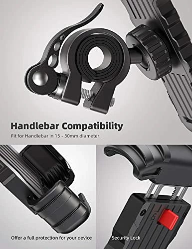 - 【 Sturdy and Safe】 A special shape of this motorcycle & bike phone holder grips each corner of your phone tightly. It ensures the safety of your cell phone attached to the bike handlebar even on a bumpy road. ❗ Must lock the phone clamp when ride! ????????Great Gift for a rider.????