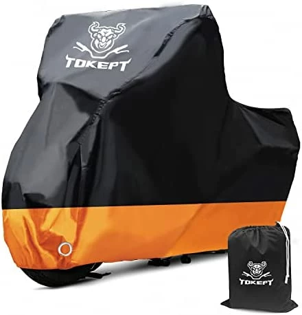 I gave this cover high ratings on durability and water resistance because it will be used indoors and will never be stored outside in the weather. I bought it merely as a dust cover while being stored in the garage and I’m sure it will be perfect for that. It does appear to be well made, although the material seems to be similar in thickness to a nylon windbreaker. There is an inside liner which I would imagine would enhance its strength. It has straps to hold it on and the Tokept logo as in the picture, makes the front easy to find. The instructions show how to fold it up very small in case you want to take it along with you. Definitely worth 20 bucks.