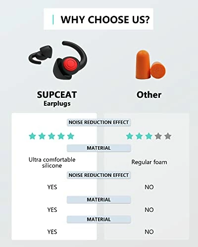 - HEARING PROTECTION -SUPCEAT earplugs for sleep can soften and optimize the sound source and reduce noise, and the frequency combination is just right. These hearing protection ear plugs protect your eardrum and hearing from sharp noises during concerts, festivals, live loud events, decoration, sawing or while riding a motorcycle.