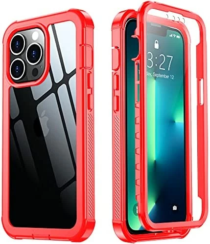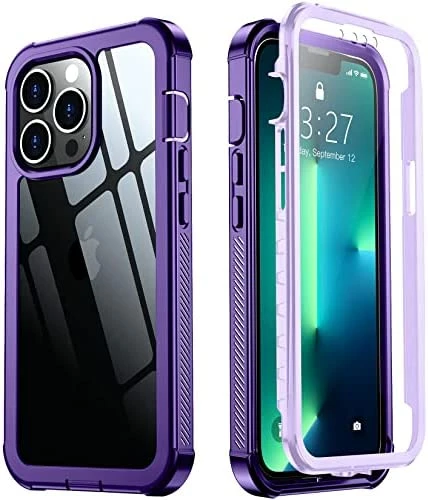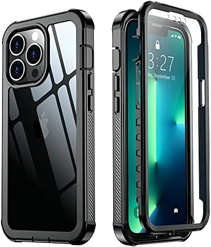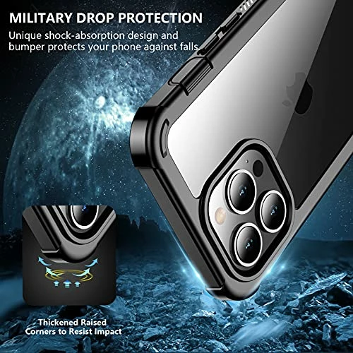 - 【Military Drop Protection】 The iPhone 13 pro max protective case with double-layer design of the built-in screen protector and sturdy transparent back cover provides 360° full-body protection for your new iphone. Unique shock-absorption design to disperse severe shocks, prevent unexpected impacts and scratches.