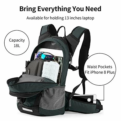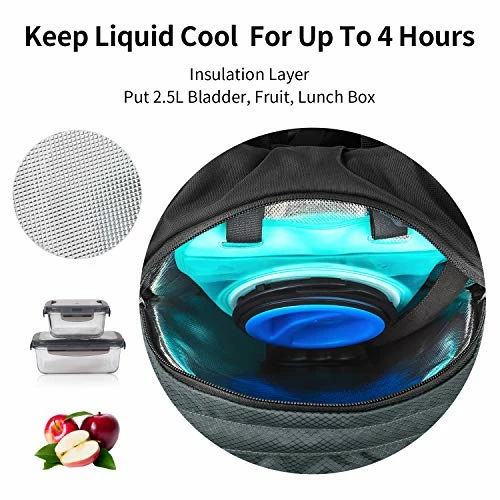 - PERFECT DAYPACK INCLUDING 2.5L BLADDER : This large capacity daypack with hydration insulation layer weights only 1.4 pounds (650g) unfilled which makes it a terrific companion for all your day-long outdoor adventures including running, cycling, hiking, fishing, etc. The bladder is made of EVA material and it’s BPA-free , and no taste with large 3.4-inch (8.6 cm) opening for ice that also makes cleaning easy.