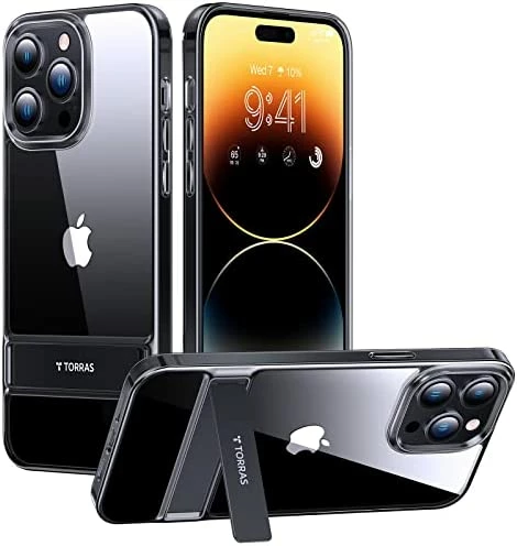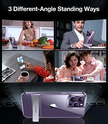 - 3 DIFFERENT-ANGLE STABLE STANDING WAYS: This iPhone 14 Pro Max phone case is a slim clear case with a kickstand built in, offers a 3-way kickstand for you to binge-watch your favorite TV shows or FaceTime your family or friends. The kickstand is made of aircraft-grade aluminum alloy material and provides the best viewing angle of horizontally and vertically.