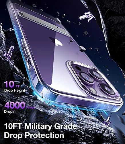 - MILITARY ARMOR-LEVEL PROTECTION: Thanks to its dual X-Shock airbags inside and outside the four corners, the clear iPhone 14 Pro Max case delivers the best possible toughness that exceeds military drop-test standards with an ultra-thin design. Built-in X-Shock airbags are designed to reinforce a cushion against collision from all angles. The X-Shock airbags outside the four corners double up on protection from daily drops.