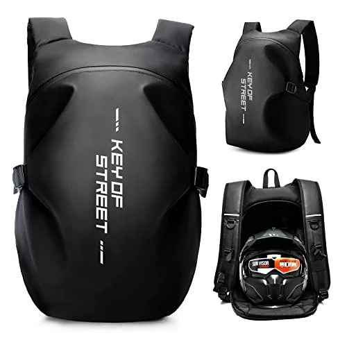 - 【Large Capacity Design】This backpack can hold all kinds of motorcycle helmets, full-face helmets, off-road helmets and more. In addition , it can also hold cycling gloves . For daily trips, office trips, outdoor sports, hiking, you can place a 15.6-inch laptop, iPad, books, basketball, football, rugby, volleyball, 5-6 sets of summer clothes and some small items.