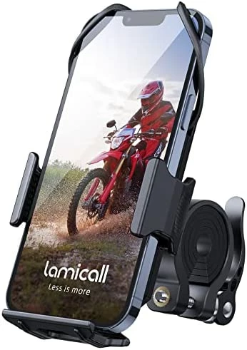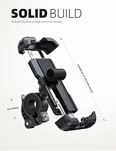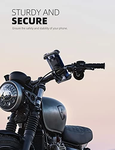 - 【 Sturdy and Safe】 This motorcycle & bike phone holder grips each corner of your phone tightly and on the back of the phone clamp with a safe switch can lock the clamp. It ensures the safety of your cell phone attached to the bike handlebar even on a bumpy road.