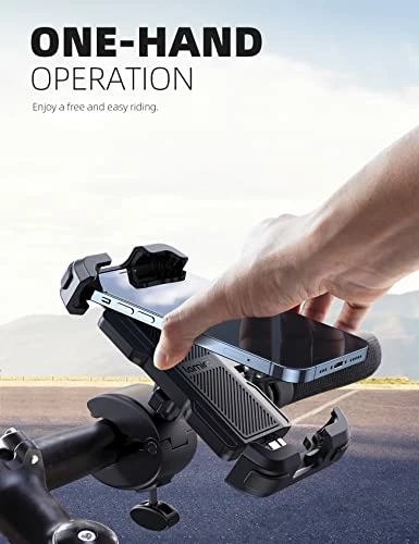 - 【 Sturdy Safety Lock】 The detachable phone holder for bike has an upgraded security lock at the back to help you lock the cellphone more steady, make sure the safety of the mobile phone in high-speed cycling or on a bumpy road. The new handlebar clamp makes sure that your phone is more stable during the ride, wouldn’t slide even with severe bumps.