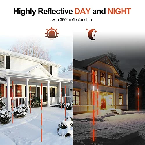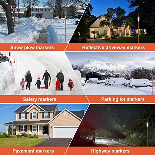 - This snow stakes driveway markers in highly noticable orange color with reflective tape on top, provides 360-degree reflection that are visible all day and night and in any weather.