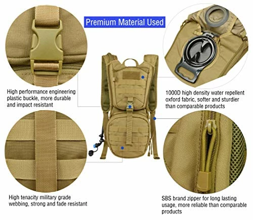 - Reliable Material: Heavy duty 1000 Denier water repellent nylon with superior wear resistance. Engineering plastic buckle is durable and impact resistant; Military grade webbing is strong, anti fading; SBS brand zipper is reliable and long lasting.