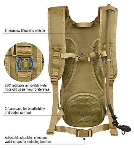 - Versatility: Frees your hands while drinking, this tactical hydration pack is your perfect choice for short trip, camping, bike riding, walking, mountaineering, kayaking, skiing, snowboarding. A decent Holiday Gift for families and friends who love outdoor sports.