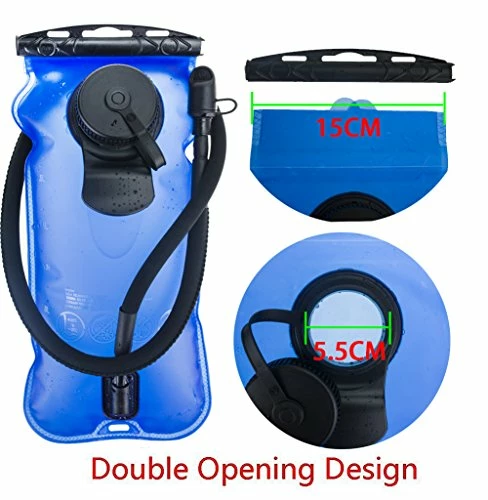 - Double opening design. As the most popular design for high end hydration systems in recent years, this allows you to refill in any condition. High flow, auto-lock mouthpiece to prevent leaking and comes with dust cover.