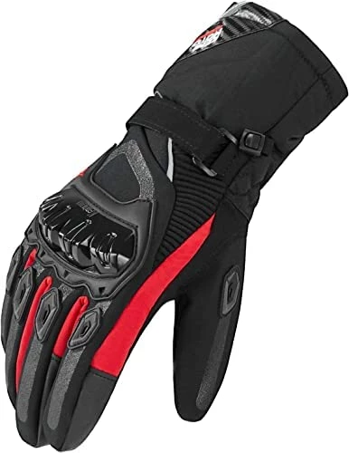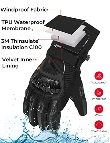 - RAINPROOF AND WARM – Tips: the size of these gloves are Asian size. Please Choose the corresponding size according to the size chart. These motorcycle gloves made from velvet inner material and a rainproof layer can resist getting wet, keep your hands warm and dry while driving in winter. The elastic band is used to keep warm and resist the wind. No more cold hands while riding.