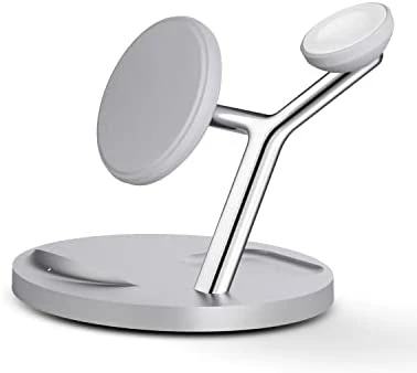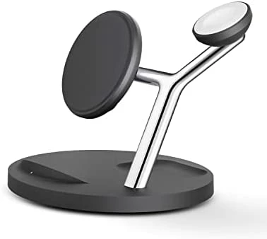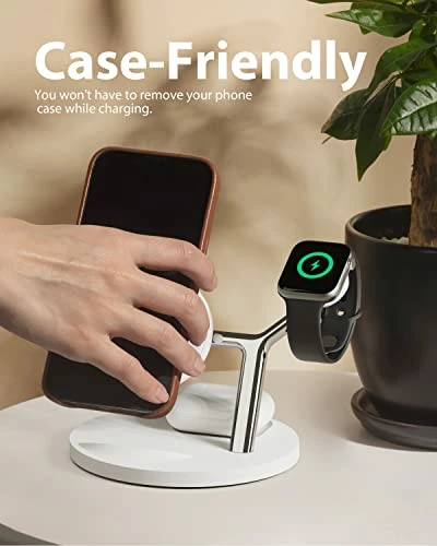 Bought this to charge both my Iphone 14 and Iwatch at the same time while reducing all the wires. It has done the job. The product looks great, stylish and, most important, charges the phone and watch. I have the Iphone 14 in a magsafe case and do not have to remove the case for charging. I bought this one after purchasing a different 3 in 1 charger that did not work. I choose this one specifically for being an Apple certified MFi product. The phone does rest on the stand and does not magnetically connect. That was not a big deal to me. A bigger deal is that it works!